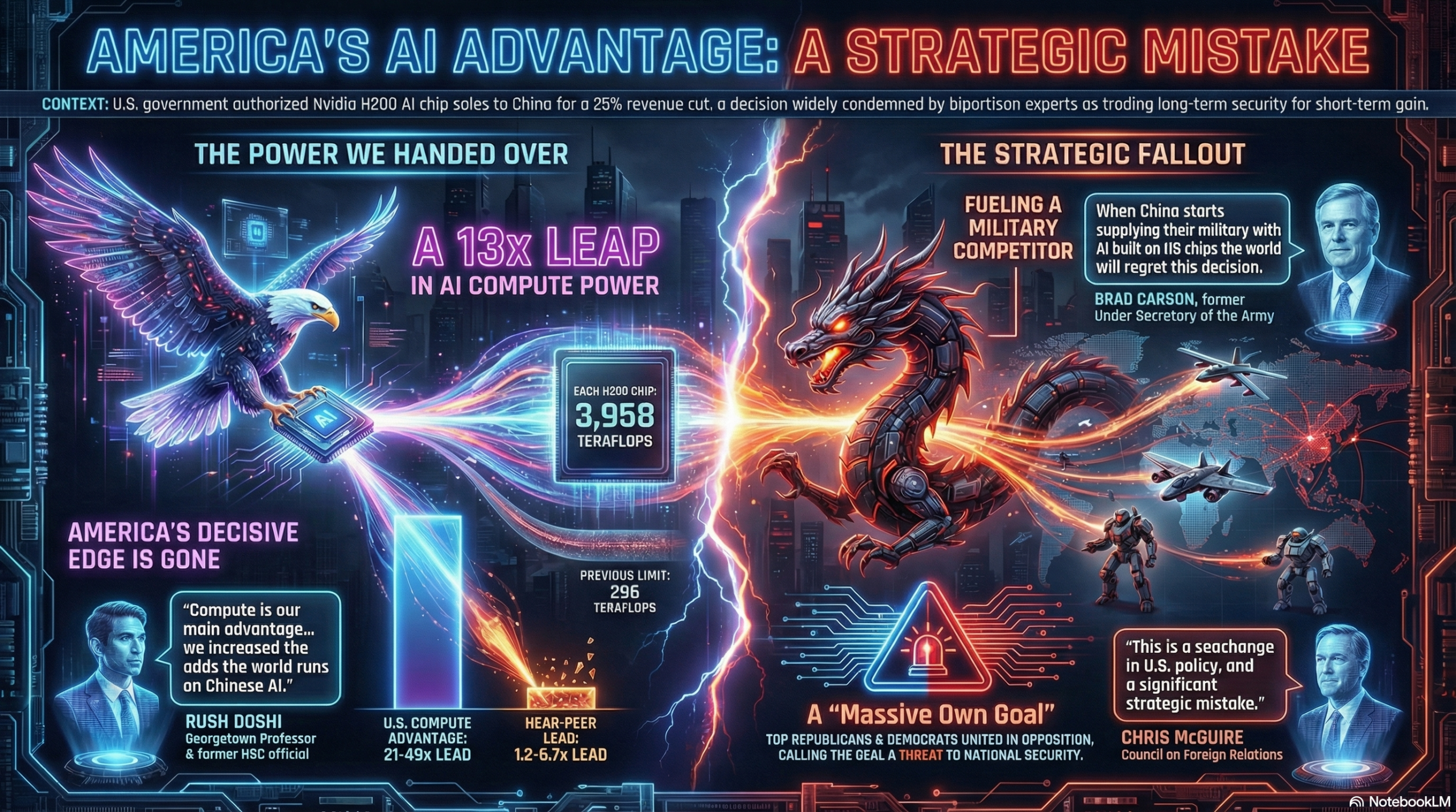 So we’re handing China chips they literally cannot make themselves, during the most critical acceleration phase of the AI race, in exchange for… what exactly? A revenue share that might bring in $6-7 billion annually? Against a technology lead worth potentially trillions in economic and military advantage over the coming decades?